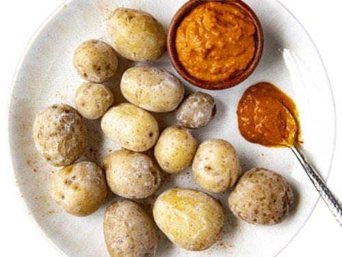 Salt-boiled potatoes · red & green mojo